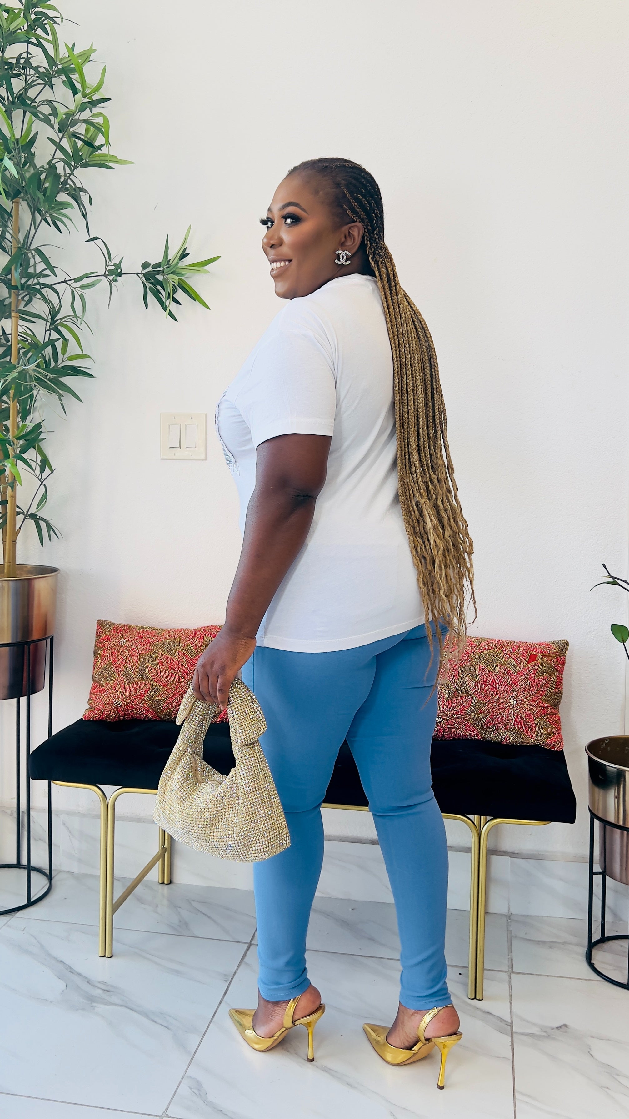 BIG CITY DENIM RHINESTONE DETAIL T-SHIRT TOP (White)