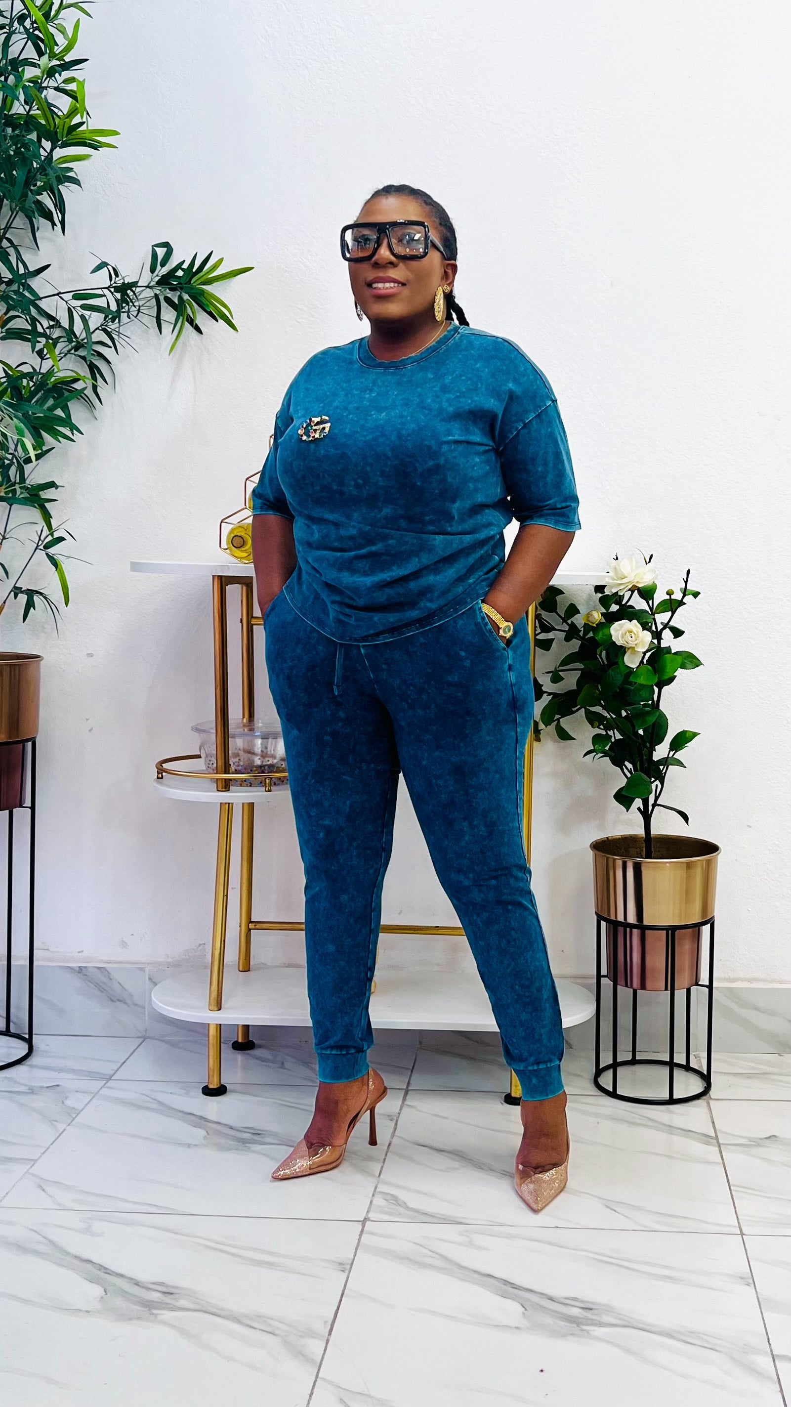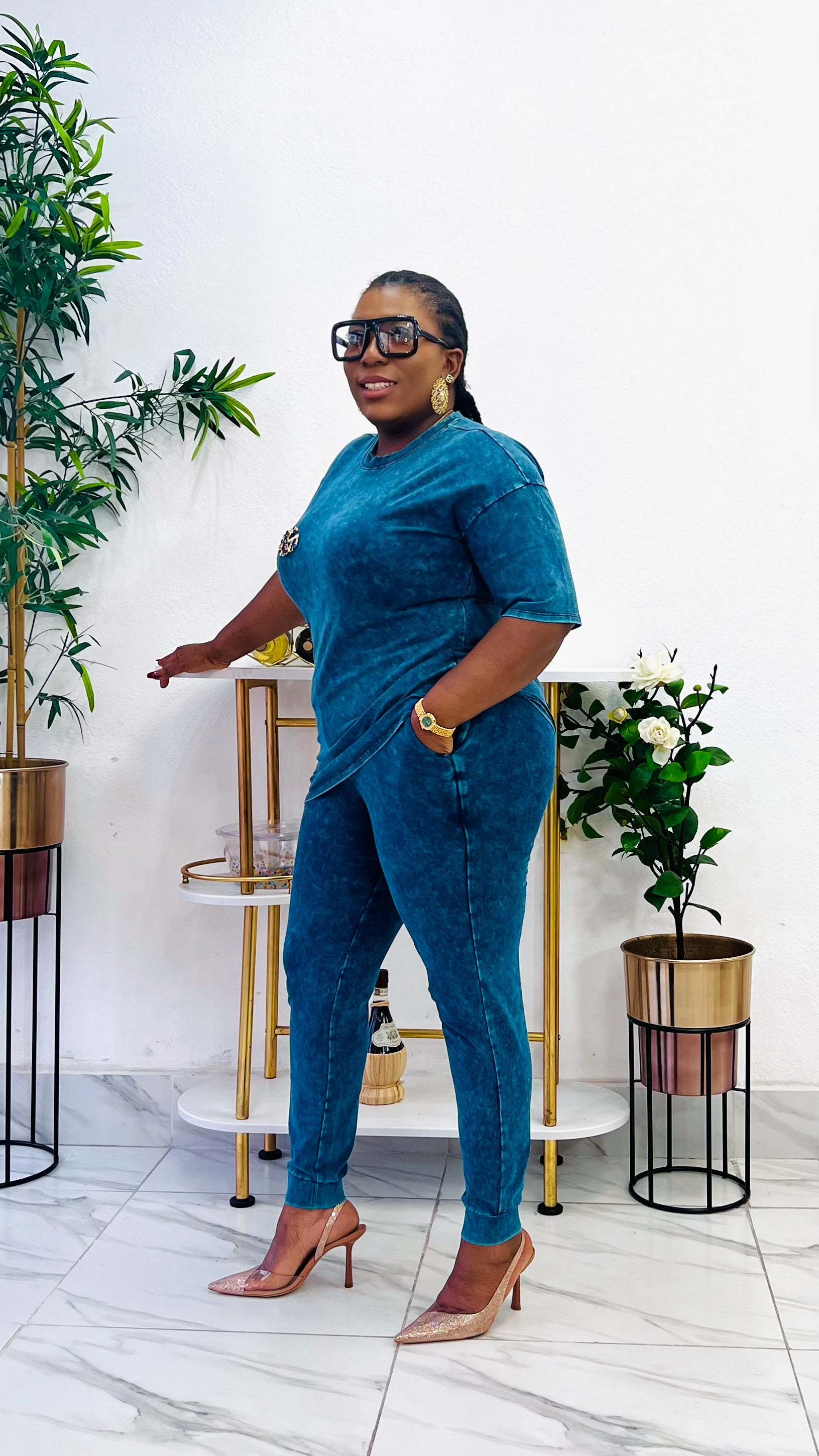 Introducing our GLADYN Soft Denim Wash 2 Piece Set, made with the soft denim fabric for ultimate comfort. This stylish set features an oversized top and matching joggers pant , has a lot of stretch , This set is perfect for everyday wear and can be dressed up or down for any occasion. Upgrade your wardrobe with this must-have set. Model is wearing size Large