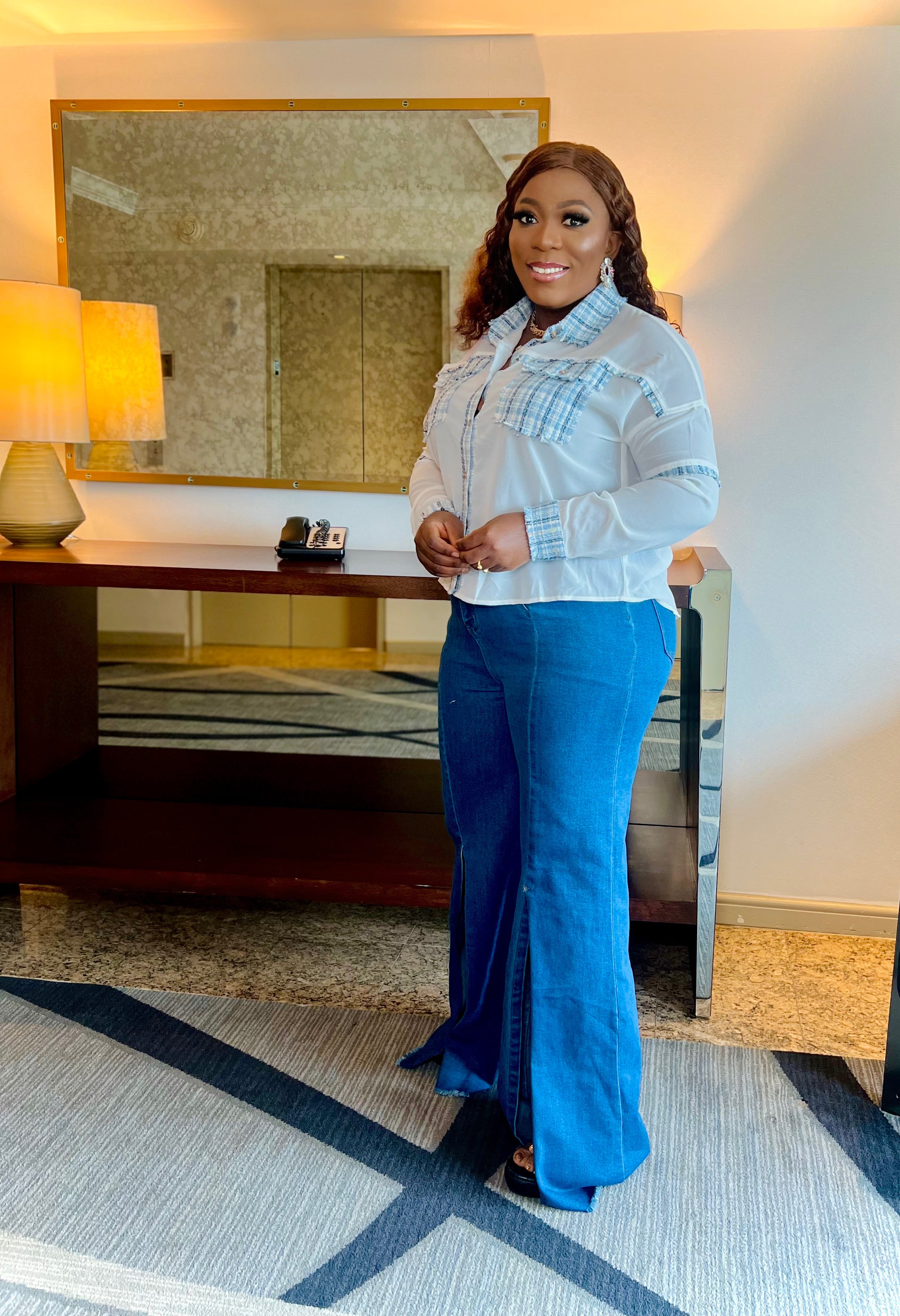 These ICONIC FRONT SPLIT HIGH WAIST BOOTCUT JEANS (Darkshade) are expertly designed to provide maximum stretch and comfort, allowing for a perfect fit every time. With a high waist and stylish front split, these jeans are not only fashionable but also provide a flattering silhouette. Made with premium quality denim, these jeans are a must-have staple for any wardrobe. Model is wearing size Large
