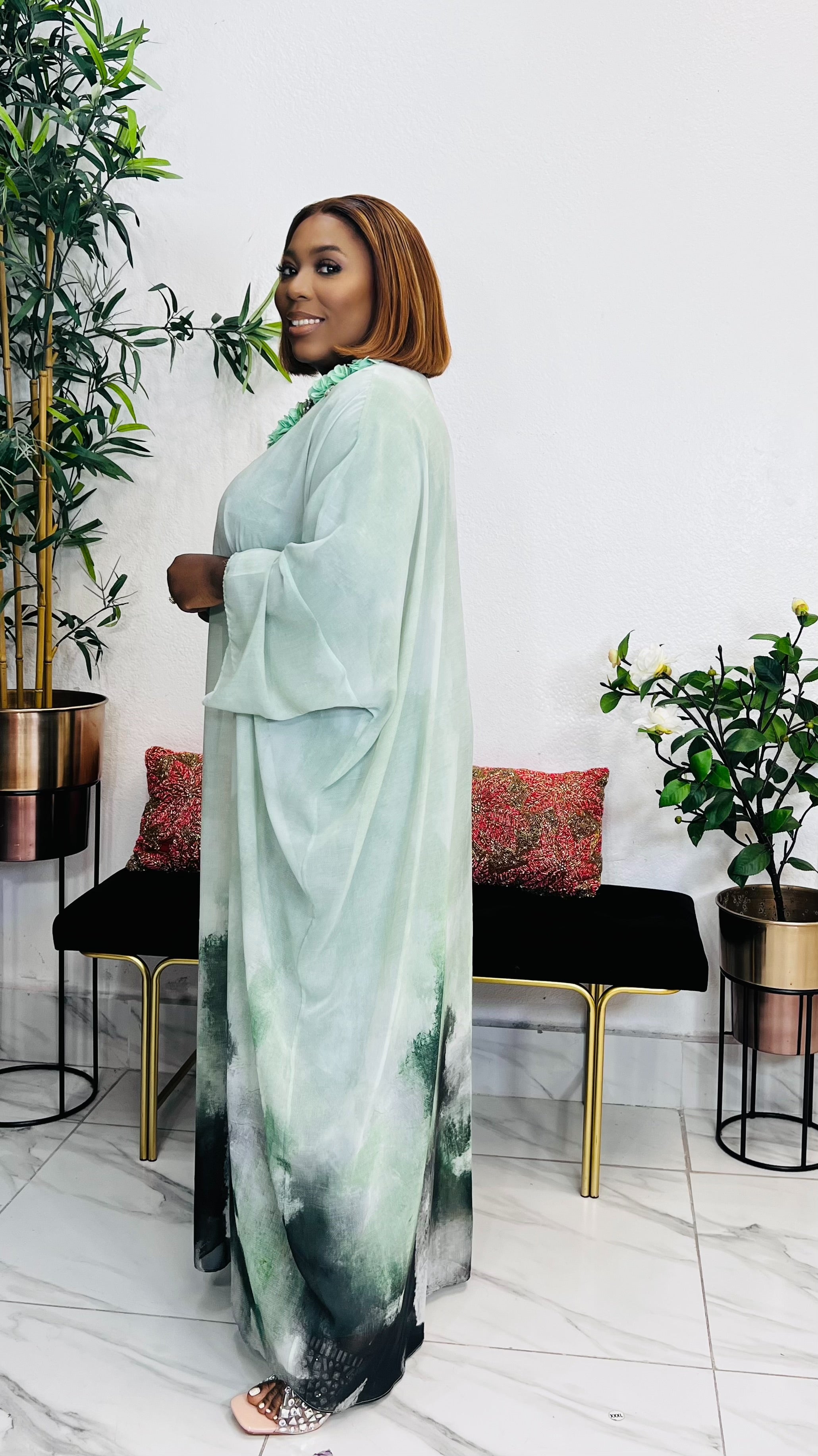 This IVY MAXI RHINESTONE BOUBOU DRESS features a stunning flower neckline with rhinestone embellishments and a vibrant green detail on the bottom. Its included inner dress provides added comfort and versatility. Elevate your style with this elegant and eye-catching dress.