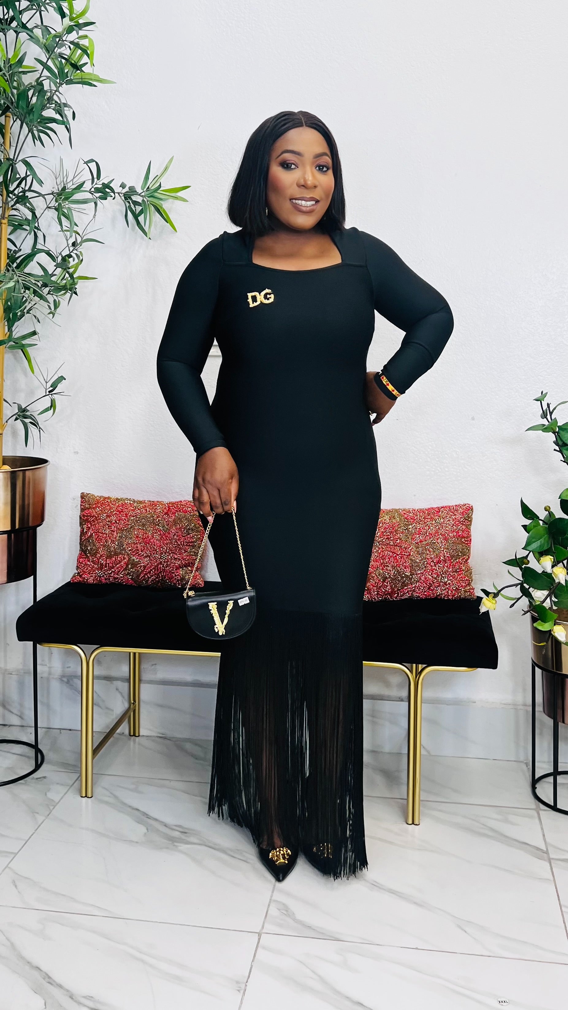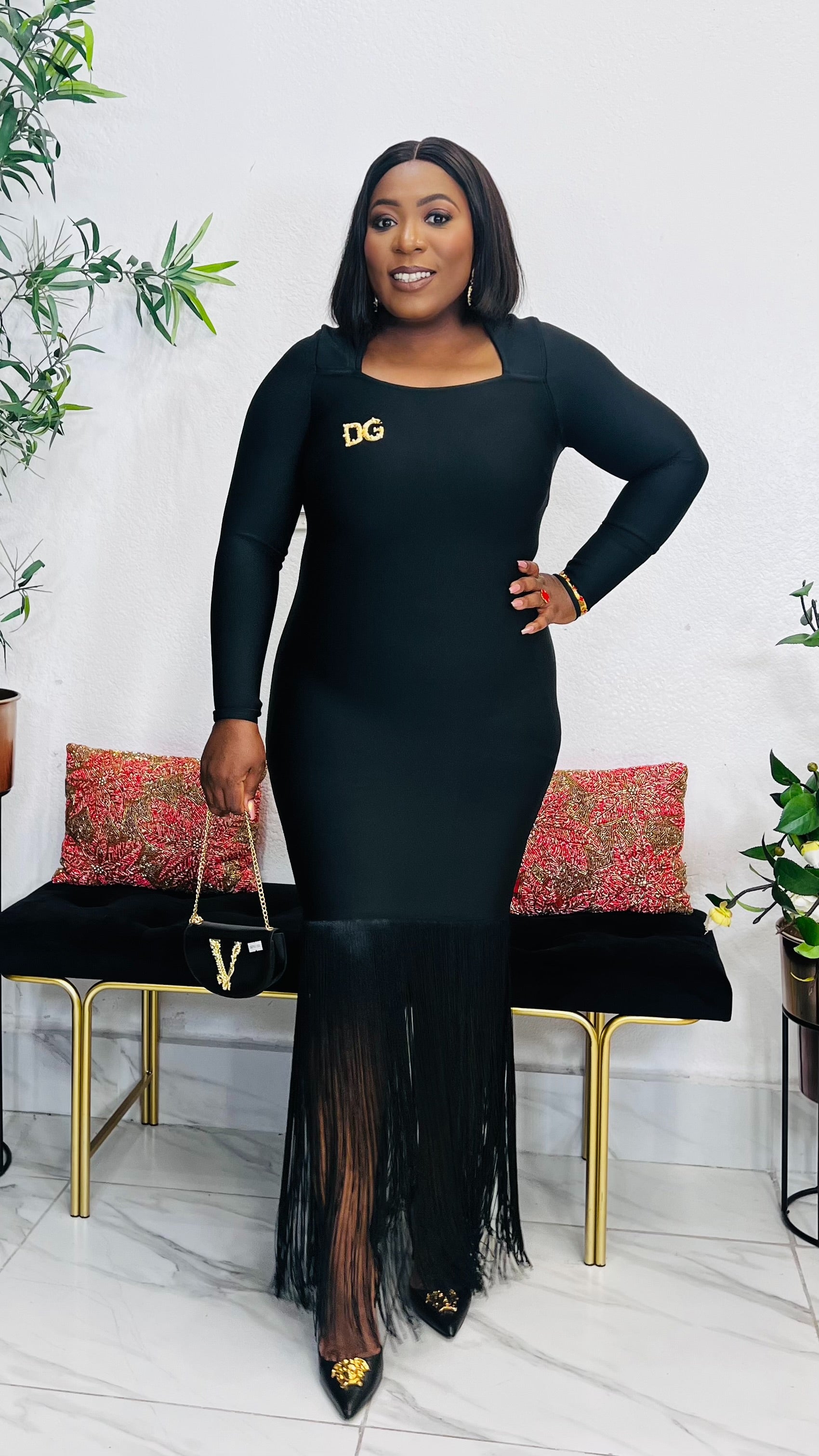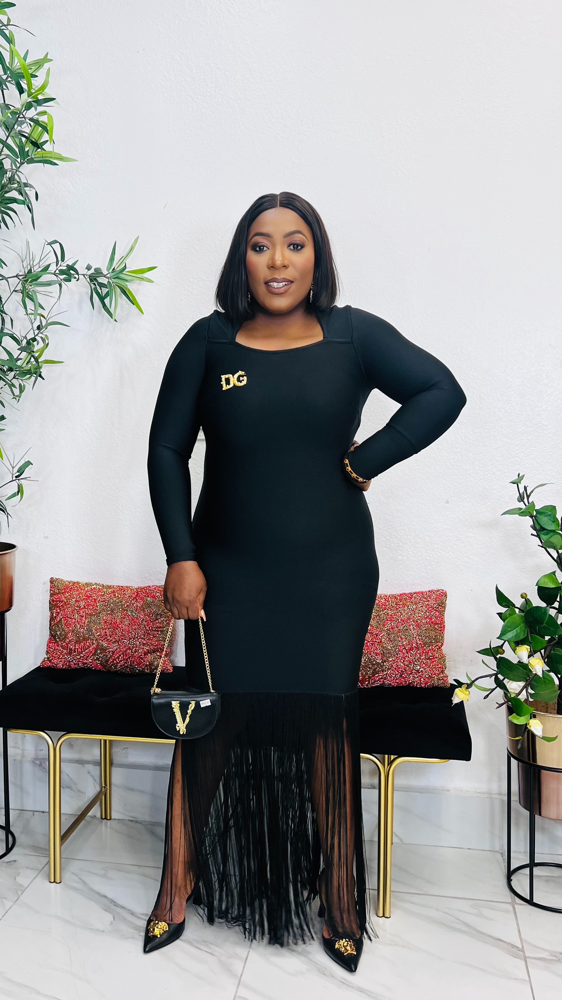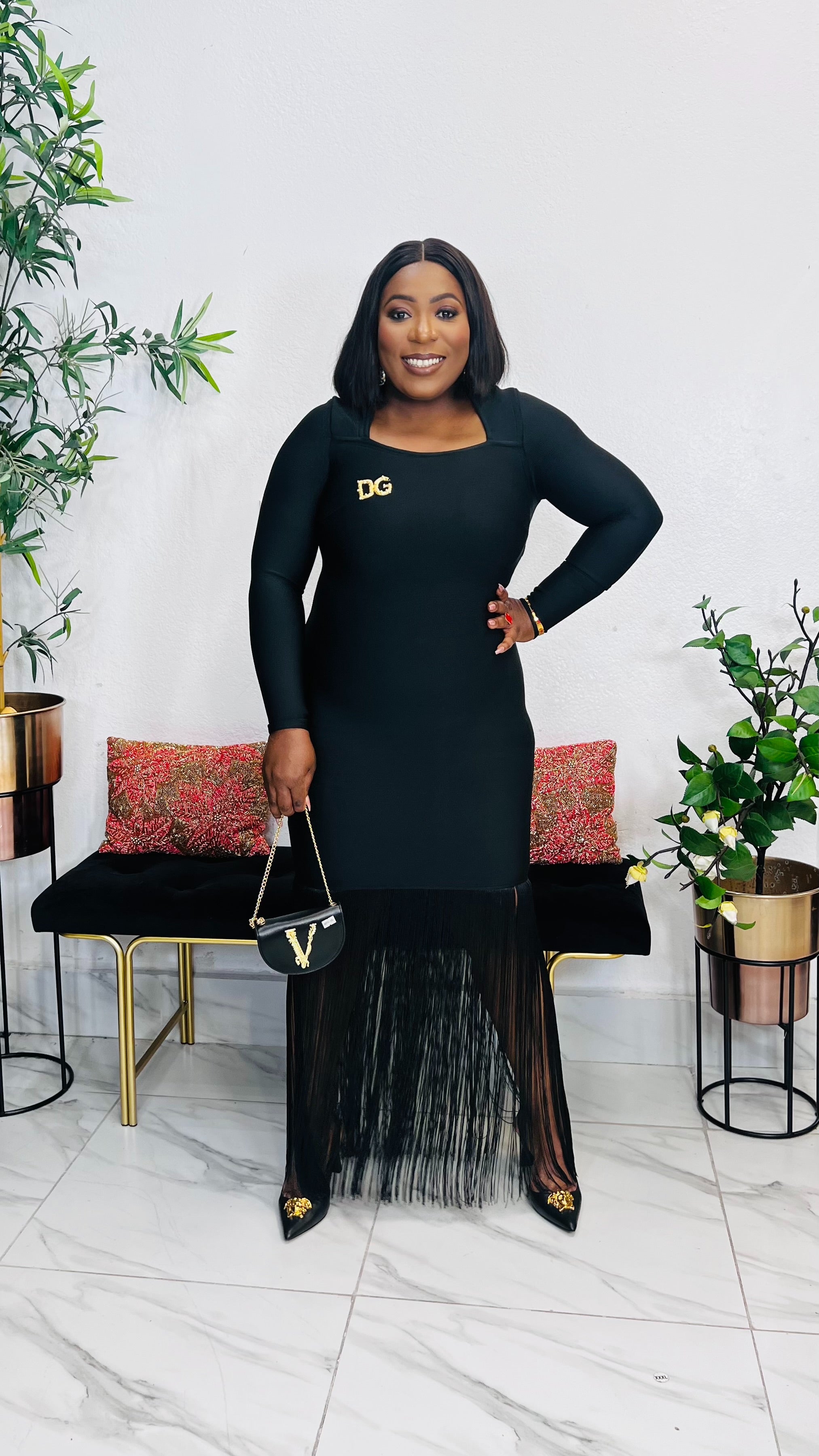 NOIR GODDESS FRINGE BANDAGE DRESS (Black)