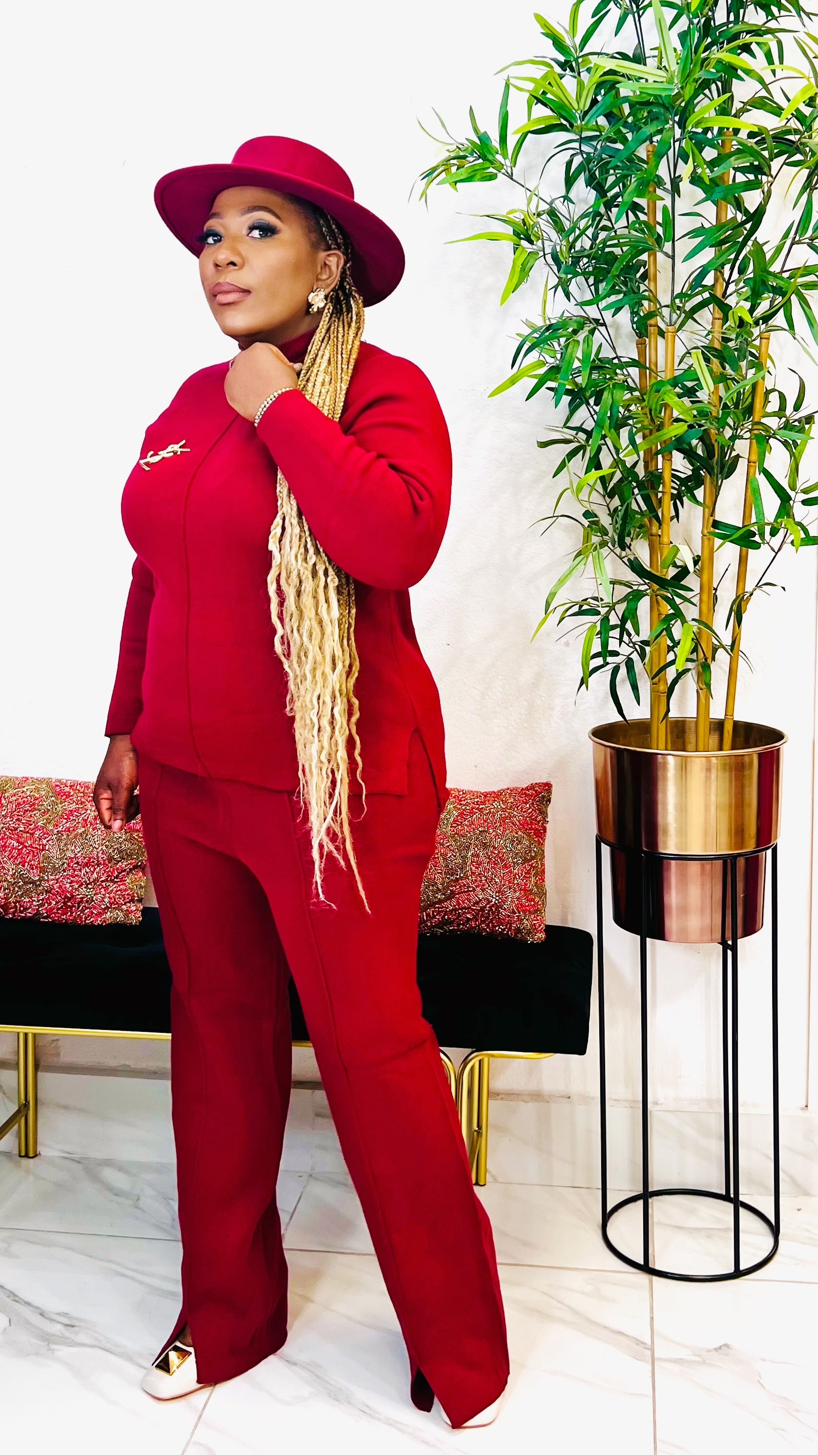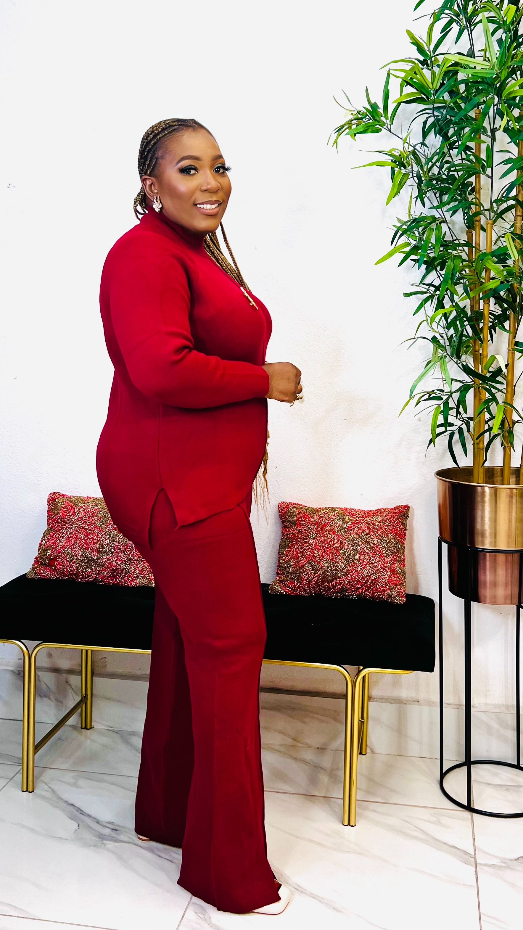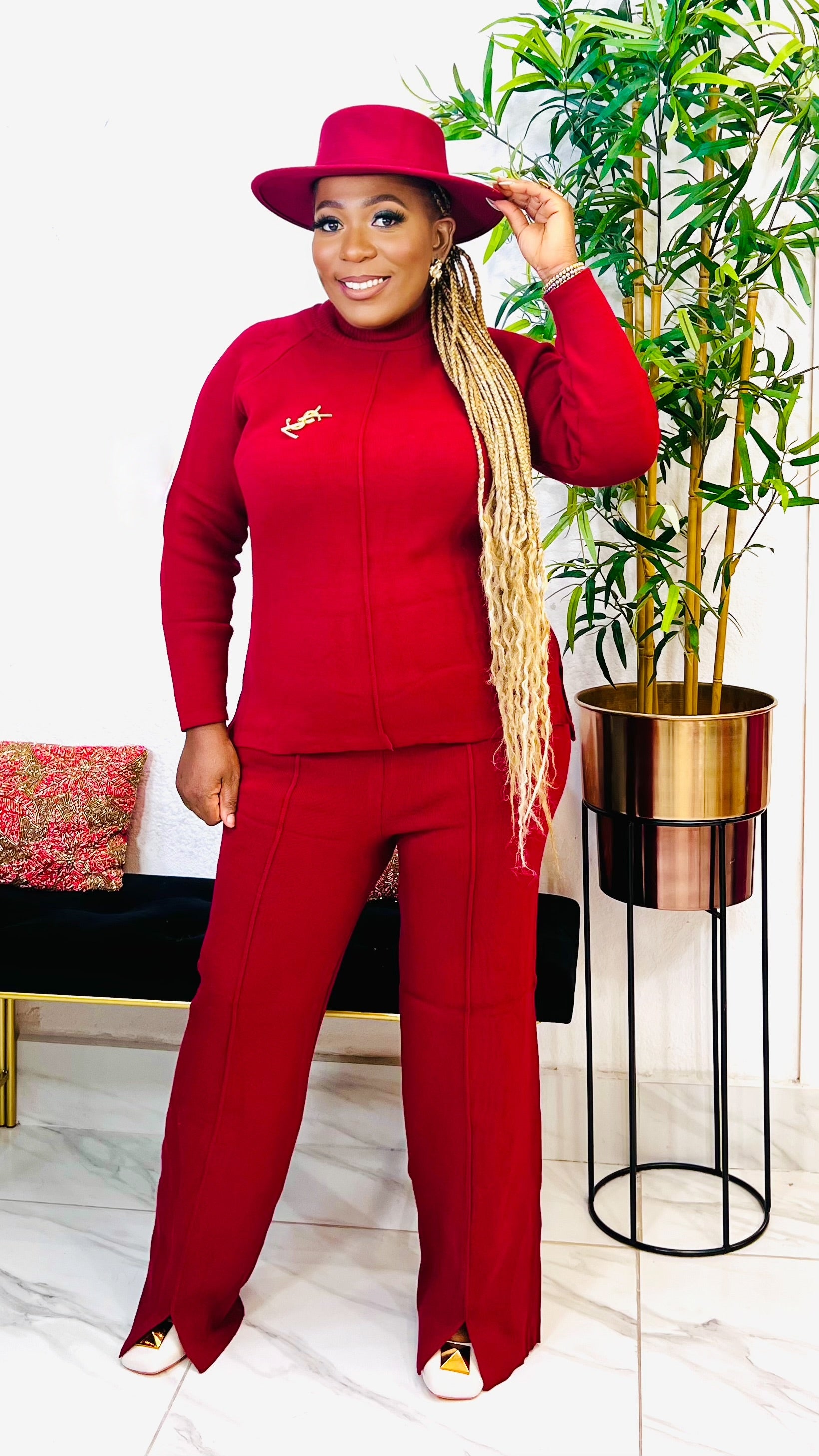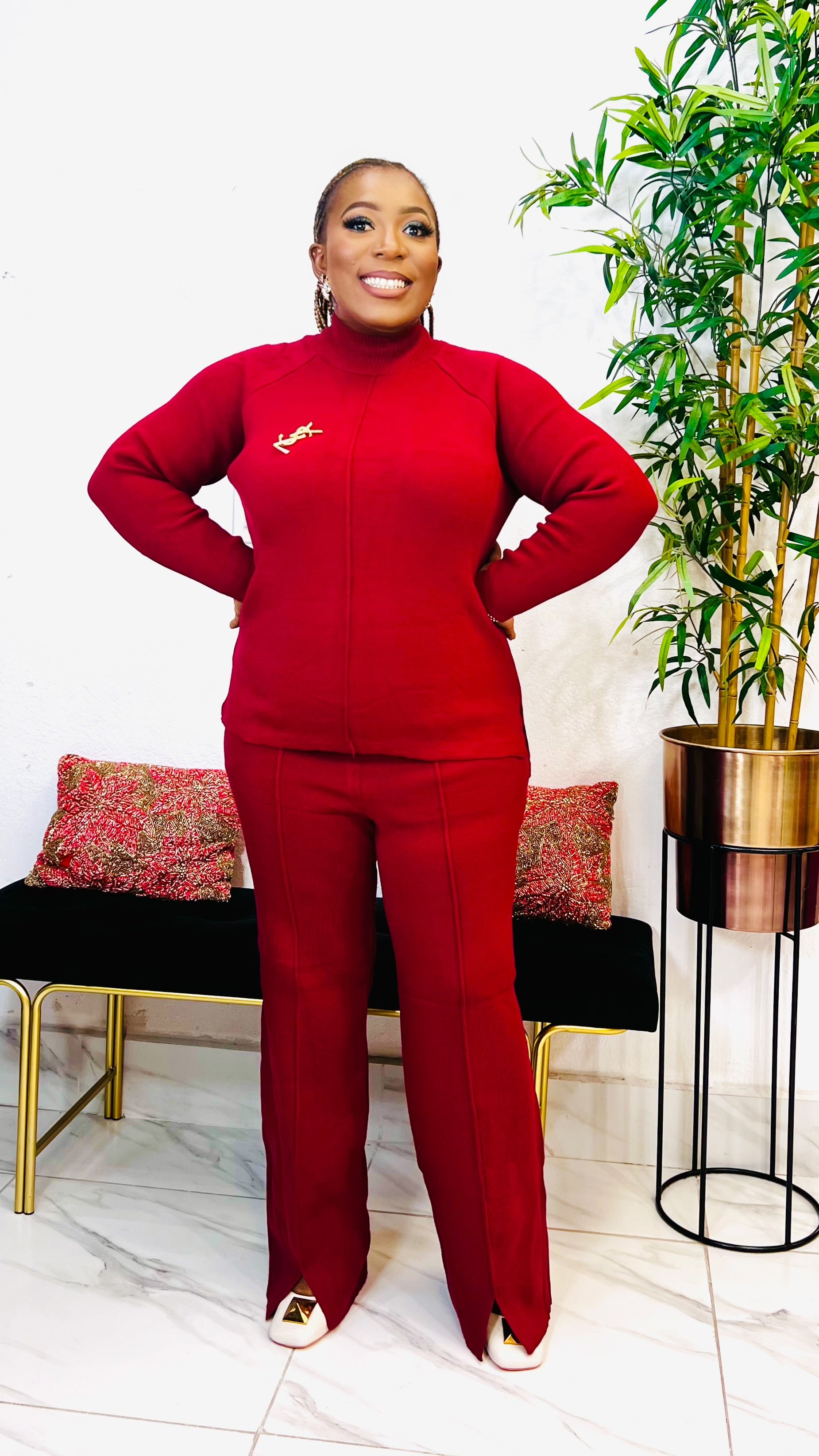 RAILEY DELUXE TURTLE NECK KNIT PANT SET (Burgundy/Wine)
