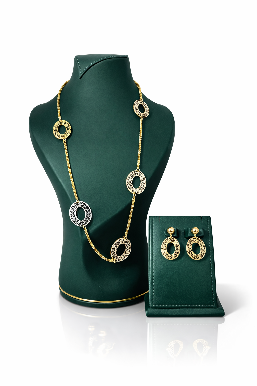 REKIA 3-TONE LASER COIN NECKLACE & EARRINGS SET