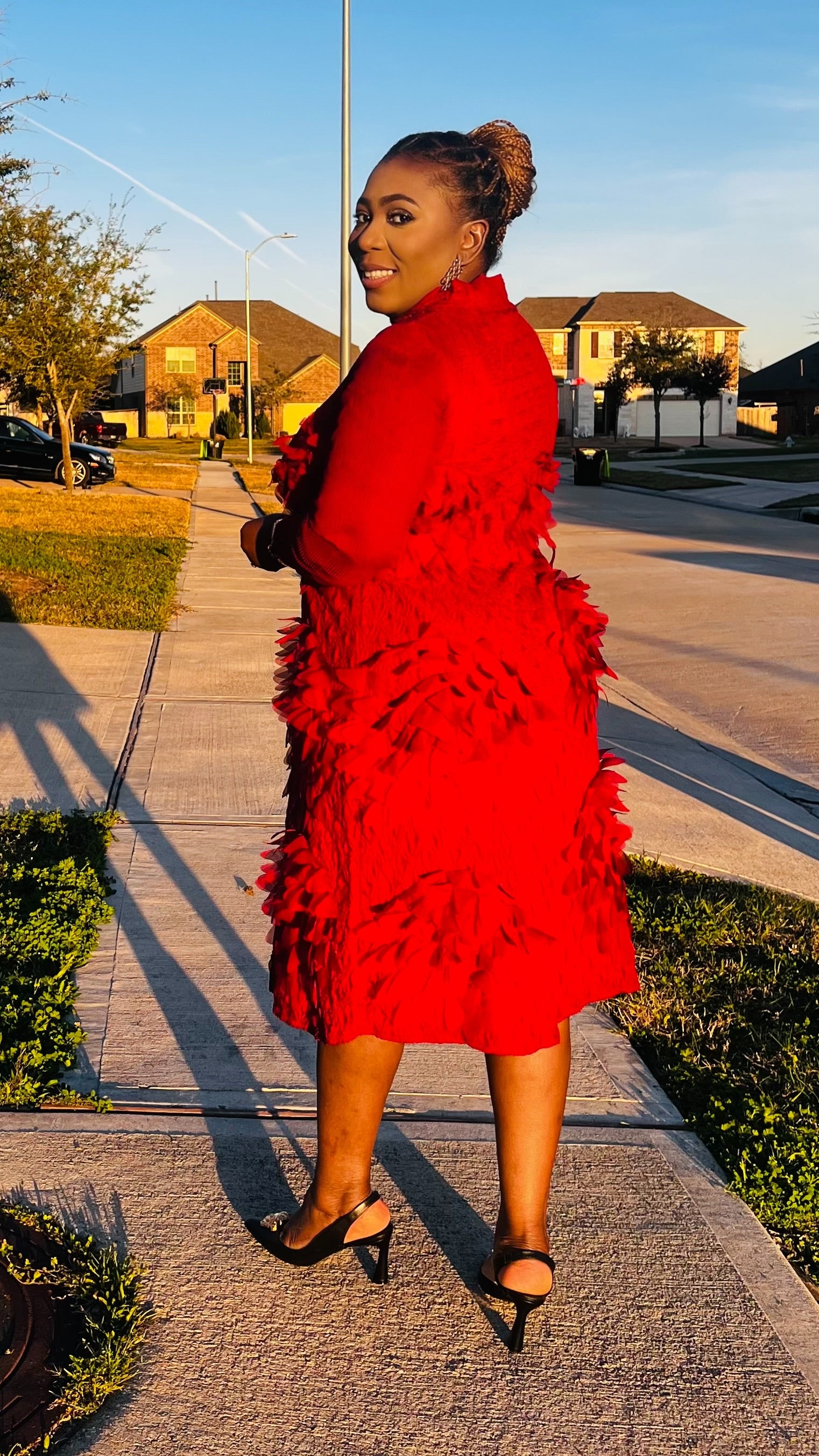 REVNA TEXTURED 3D PETAL MIDI DRESS (Red)