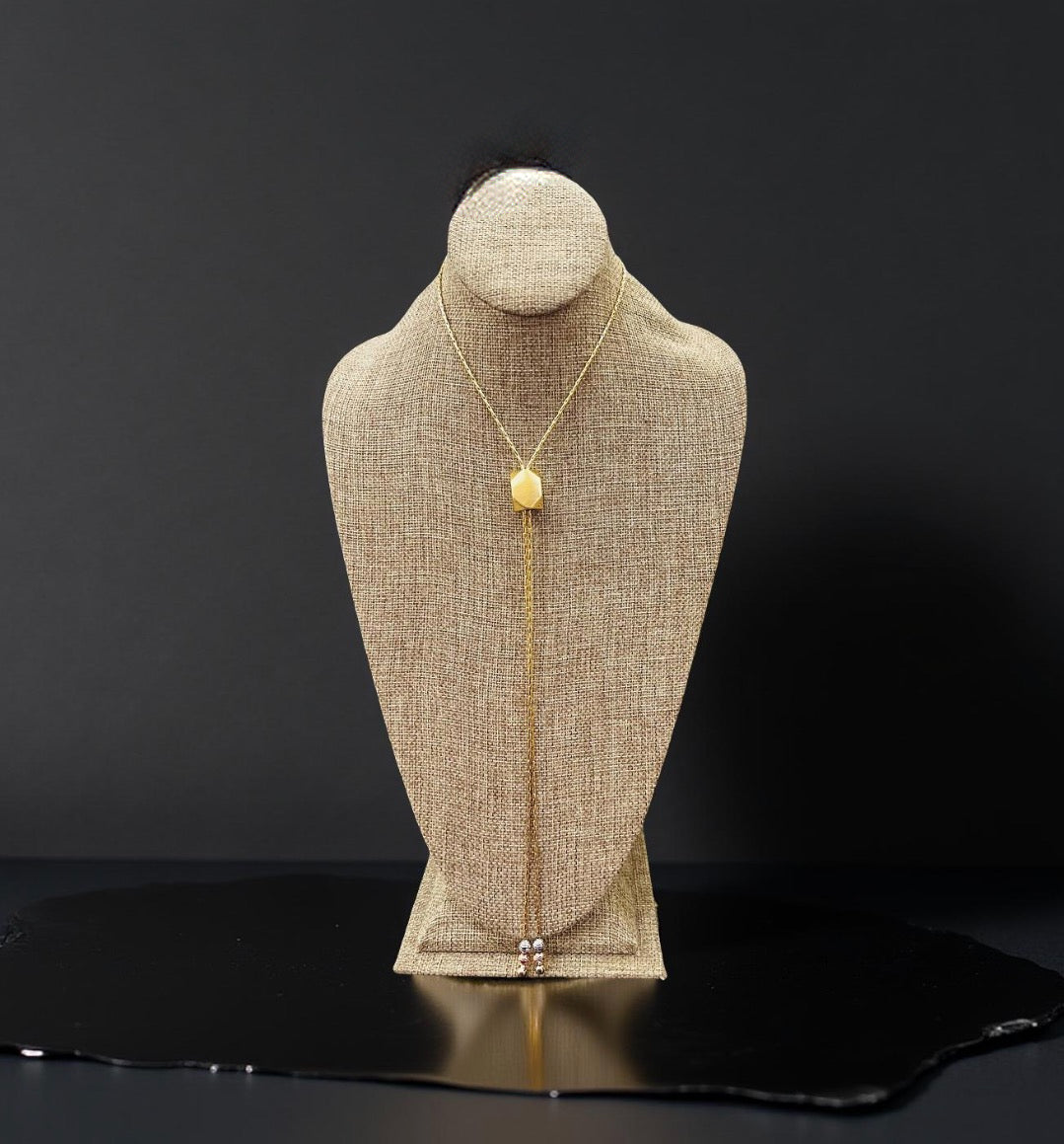 Elevate your look with this stunning Geometric Gold Drop Necklace, designed for the modern woman who loves subtle luxury. Featuring a bold geometric pendant that sits gracefully on a fine gold chain, this piece exudes elegance and sophistication. The long, delicate tassel detail adds a touch of drama, making it perfect for both casual and evening wear , can be worn as a choker or long necklace .  Details: Material: 18k Gold-plated stainless steel Pendant: Polished geometric charm Closure: Adjustable lobster clasp Length: Long, lariat-style drop design Hypoallergenic and tarnish-resistant   Style Tip: Pair it with a plunging neckline or a classic high-neck top to make the gold details shine.
